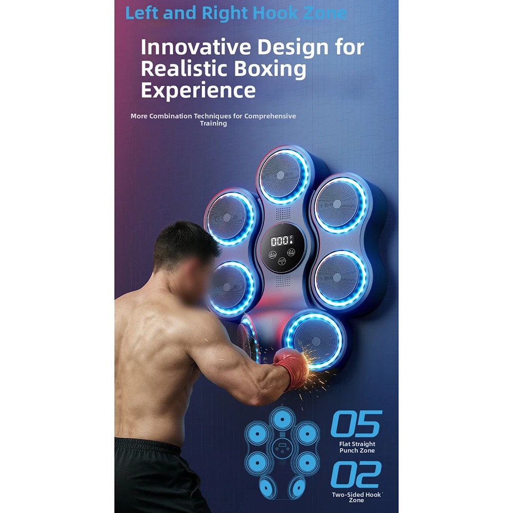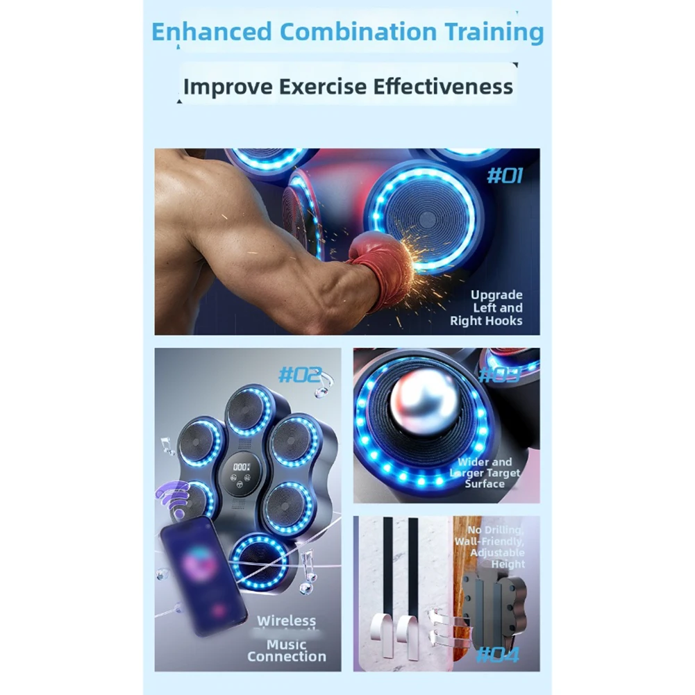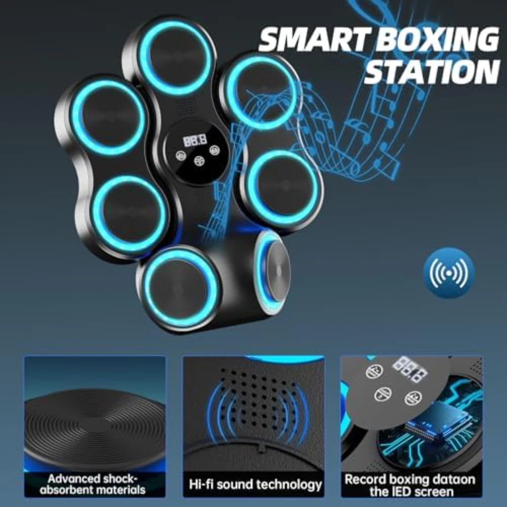 *This Bluetooths boxing simulator allows users to play their favorite music through Bluetooths during training. Not only does this add fun to the training, but through the cool lighting effects, every punch is full of rhythm